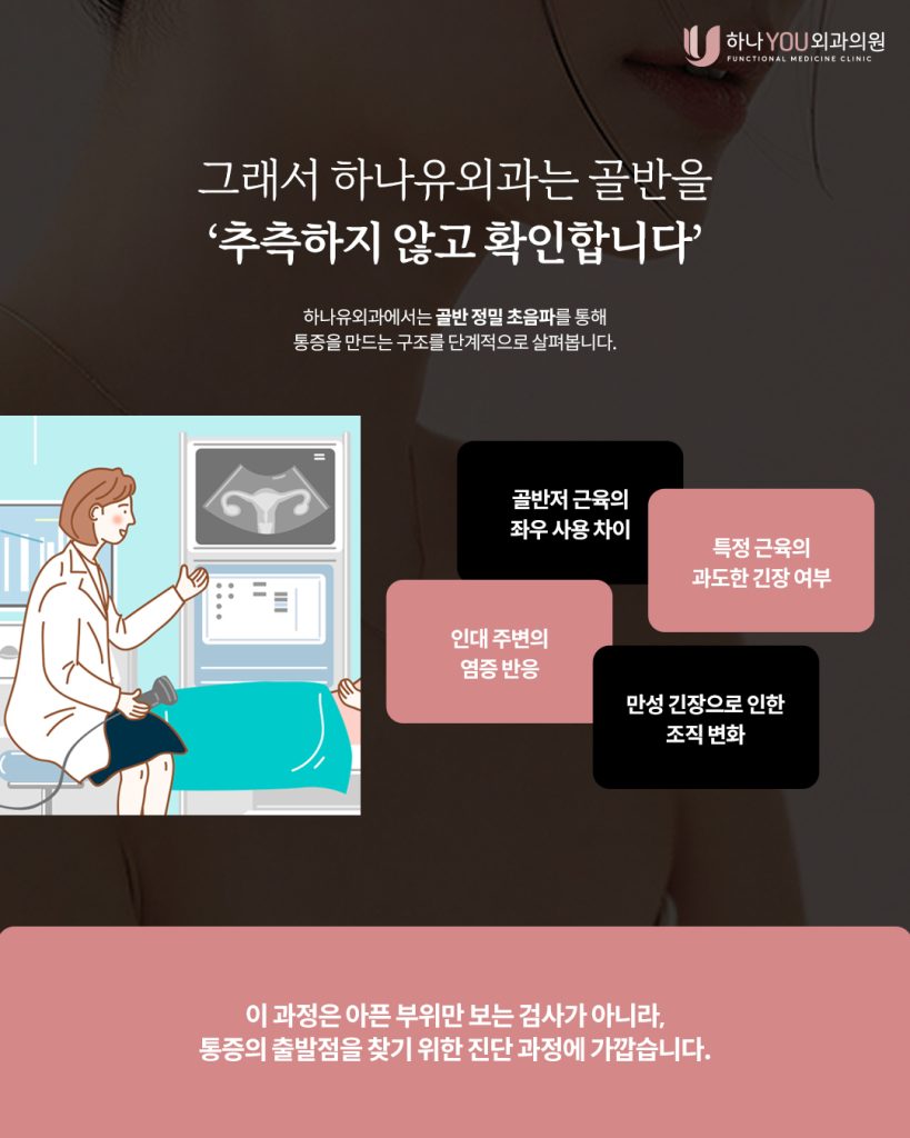 하나유외과에서는 골반 정밀 초음파를 통해 통증을 만드는 구조를 단계적으로 살펴봅니다.