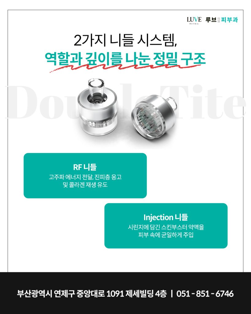 부산연제구피부과 더블타이트의 핵심은 하나의 니들이 아닌, 역할이 구분된 두 가지 니들이 함께 구성된 시스템입니다.