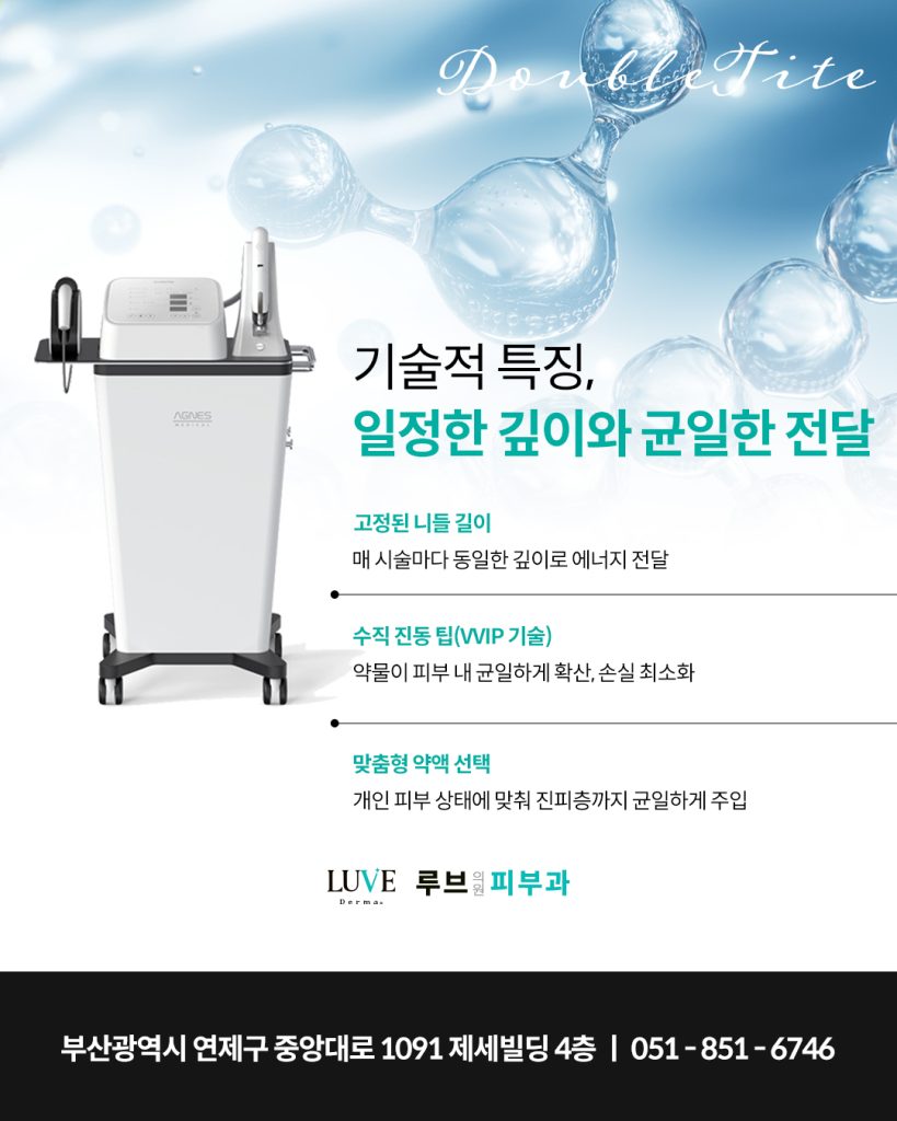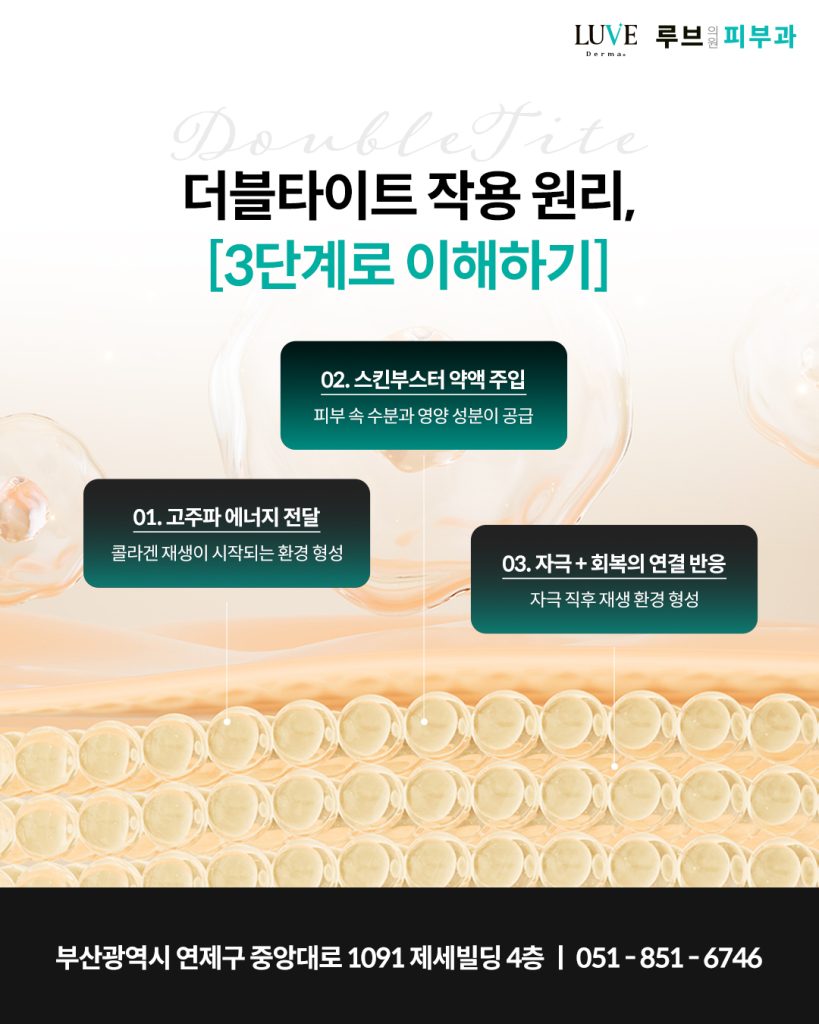 기존에는 부산연제구피부과 고주파 시술과 스킨부스터 시술을 각각 나누어 진행해야 했다면, 더블타이트는 이 두 가지 과정을 하나의 흐름 안에서 연결되도록 설계한 것이 특징입니다.