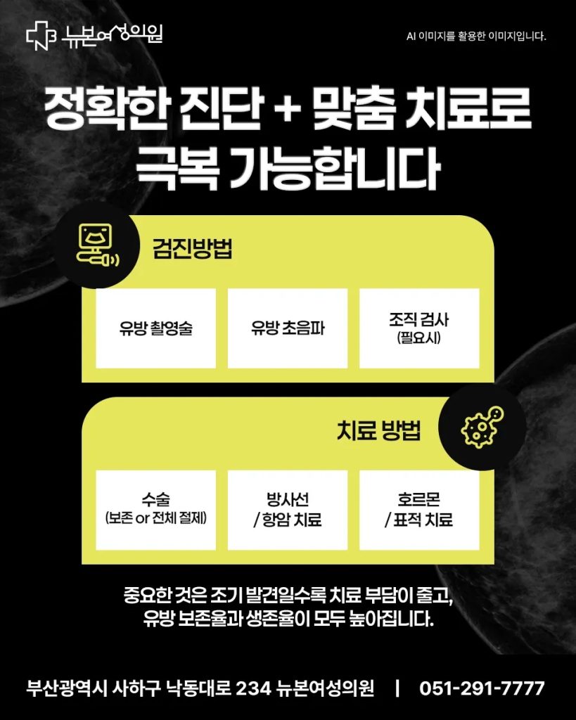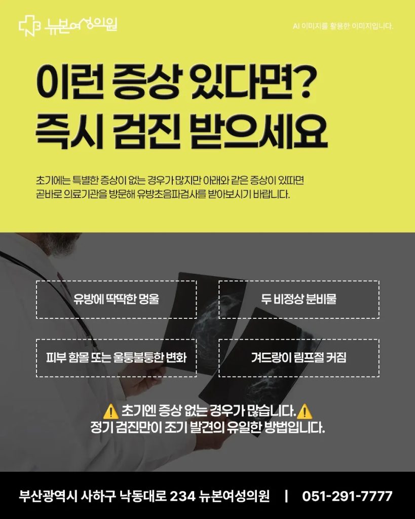 유방암은 두려워서 외면한다고 피할 수 있는 질환이 아닙니다. 오히려 방심하거나 검진을 미루는 사이 병이 진행될 수 있습니다. 나를 위한 작은 관심과 실천, 즉 생활습관 점검과 정기 검진이 가장 확실한 대응책입니다. 부산유방초음파 뉴본여성의원은 여성들이 유방 건강을 지키고 불안을 덜 수 있도록 전문적인 상담과 최신 장비를 활용한 정밀 검진을 제공하고 있습니다. 예방과 조기 발견은 지금 이 순간부터 시작할 수 있으며, 꾸준한 관리가 건강한 삶으로 이어지는 지름길임을 기억해야 합니다.