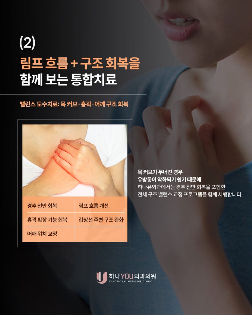 즉, 목–흉곽–림프–호르몬은 하나의 연결된 시스템이며, 이 구조가 무너질수록 부산유방통은 더 쉽게 반복됩니다.