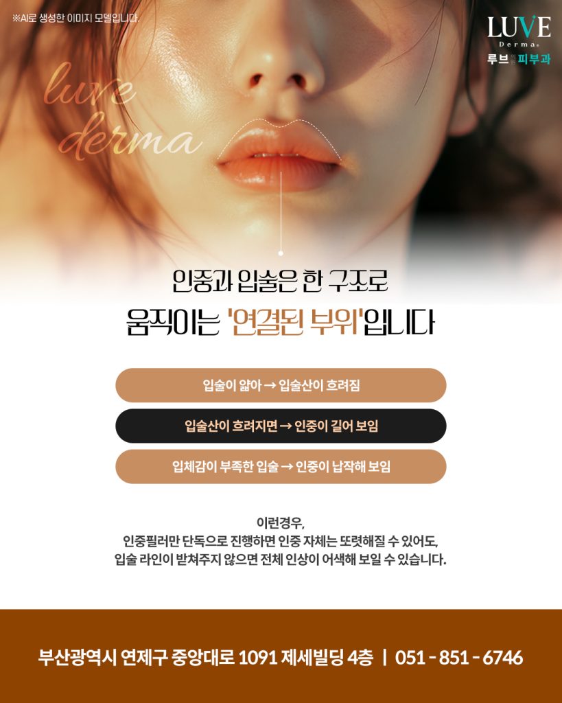 많은 분들이 인중과 입술을 별개의 영역으로 생각하지만, 실제로는 두 부위가 매우 긴밀하게 이어져 있습니다.