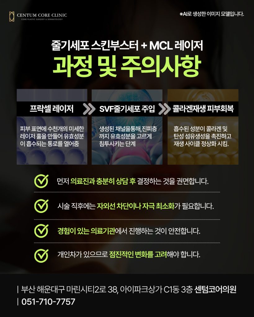 본 글은 센텀코어 의료진이 직접 작성한 원고를 바탕으로 하였으며, 의학적 정보를 전달하기 위한 목적으로 작성되었습니다. 실제 시술 여부는 반드시 담당 의료진과 충분히 상담 후 결정하시기 바랍니다.