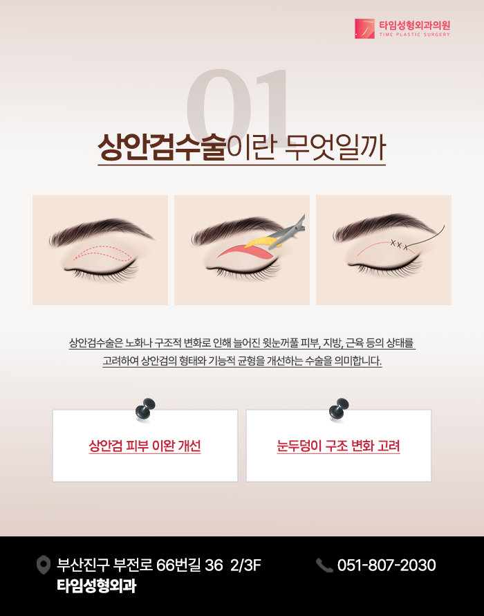 부산중년눈성형 중 상안검은 노화나 구조적 변화로 인해 늘어진 윗 눈꺼풀 피부, 지방, 근육 등의 상태를 고려하여 상안검의 형태와 기능적 균형을 개선하는 수술을 의미합니다. 특히 상안검 피부는 얼굴에서 가장 얇은 피부 중 하나로 알려져 있으며 피지선이 적고 탄력섬유가 비교적 작은 특징을 가지고 있습니다.