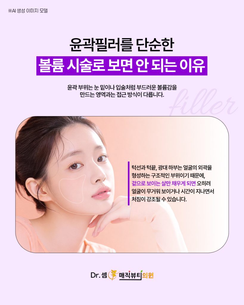 그래서 윤곽필러는 예쁘게 볼륨을 넣는 시술이 아니라, 얼굴선을 지지해주는 시술이라고 보는 것이 더 정확합니다.
