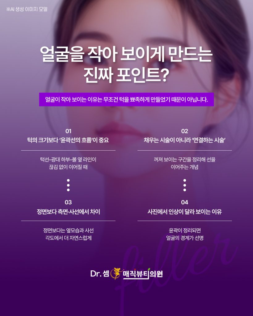 무조건 작고 뾰족한 턱을 목표로 하기보다는, 얼굴 전체의 비율과 조화를 고려한 윤곽 디자인이 만족도를 높이는 방향입니다.