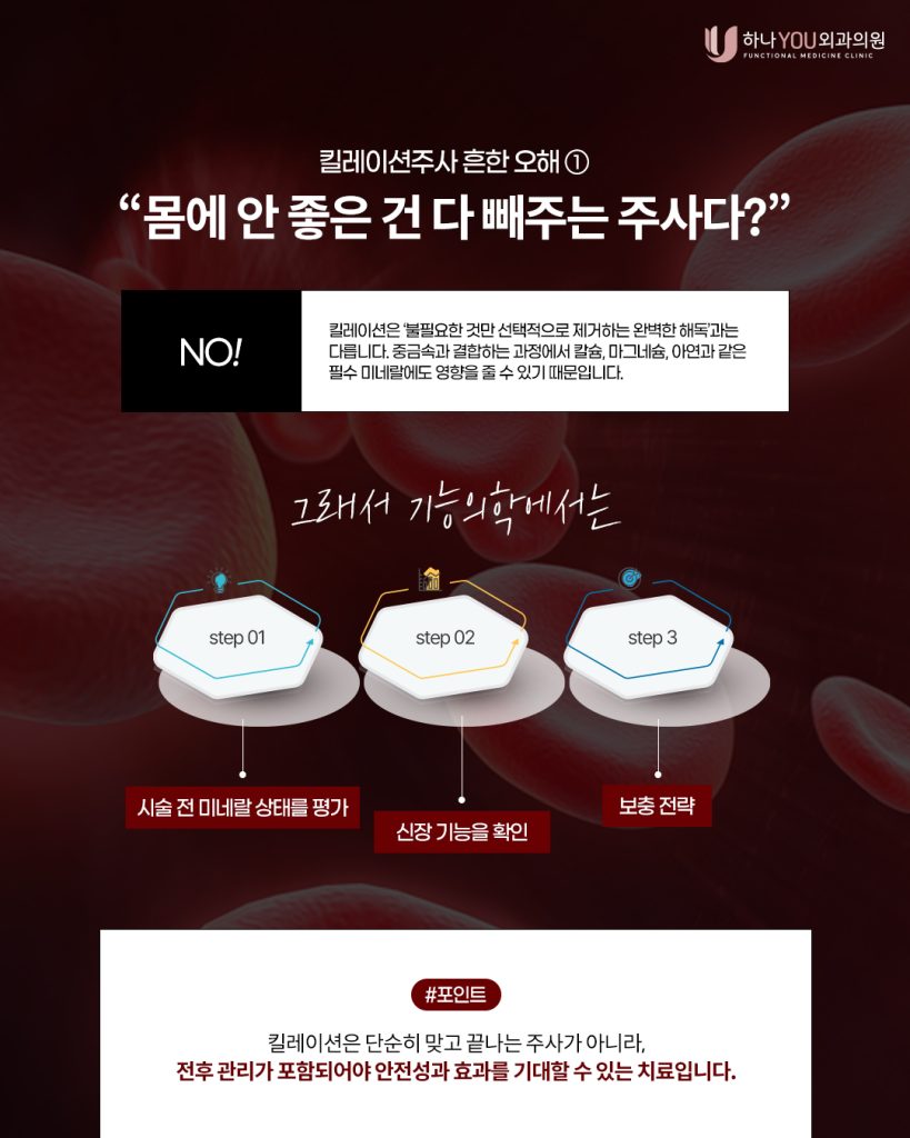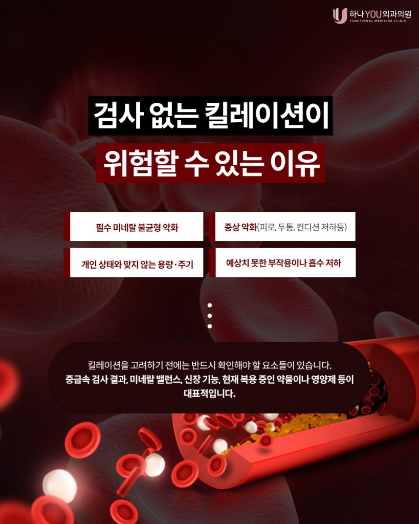킬레이션은 분명 의미 있는 치료 옵션이 될 수 있지만, 누구에게나 적용되는 만능 치료는 아니기 때문입니다.