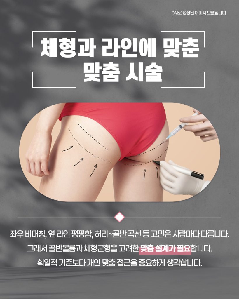 따라서 골반필러는 골반볼륨과 체형균형을 고려해 개인 맞춤 설계가 필요합니다.