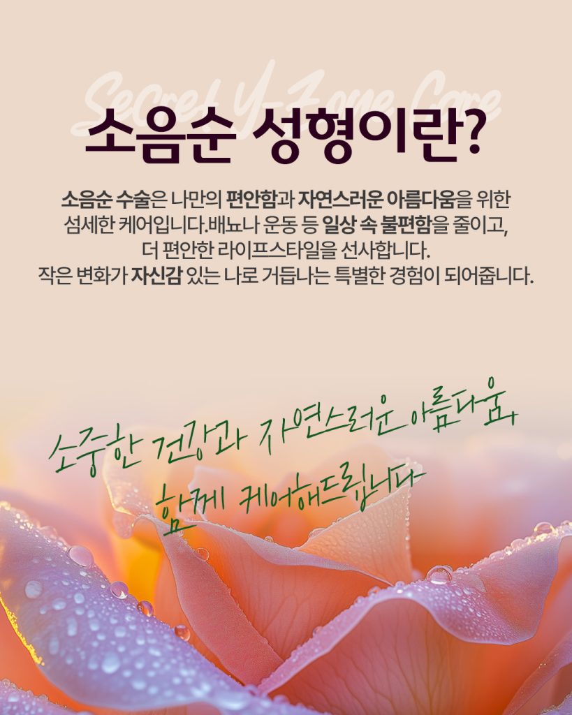부산해운대 여성성형 소음순성형은 단순 미용 목적을 넘어,생활 속 불편을 줄이고 편안함을 되찾는 선택이 될 수 있습니다.