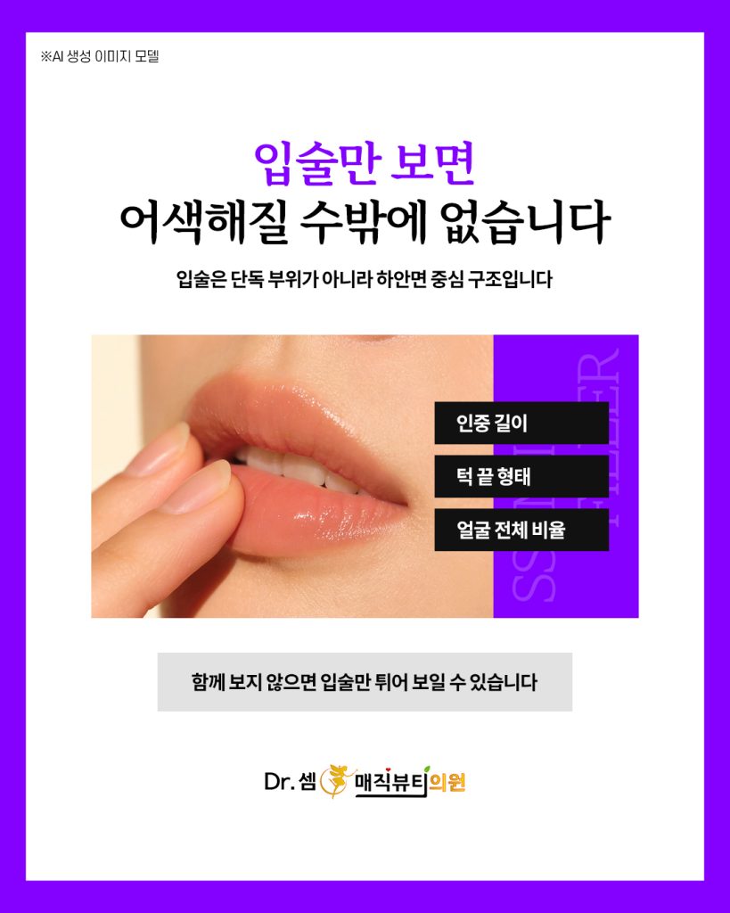 그래서 자연스러운 결과를 위해서는 입술 단독이 아니라 얼굴 전체 흐름 안에서 설계하는 과정이 필요합니다.
