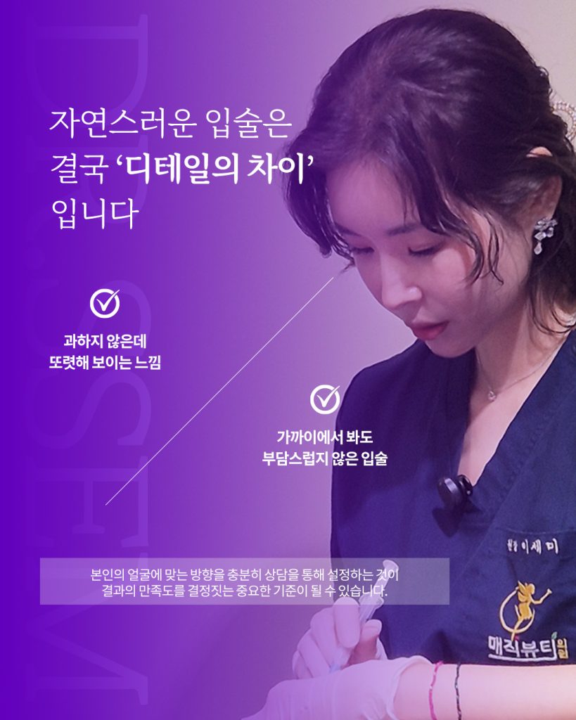 그 이유는 단순합니다. 입술은 양으로 결정되는 부위가 아니라 구조와 비율의 영향을 더 크게 받는 부위이기 때문입니다.