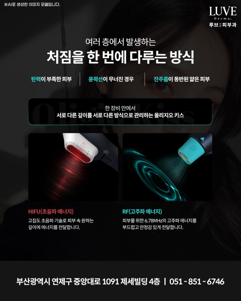 최근에는 이런 복합적인 처짐 패턴을 하나의 장비로 해결하려는 흐름이 강해졌고, 그 중심에 고주파(RF)와 초음파(US)를 동시에 전달하는 부산 연산동 피부과 올리지오키스 리프팅이 있습니다.