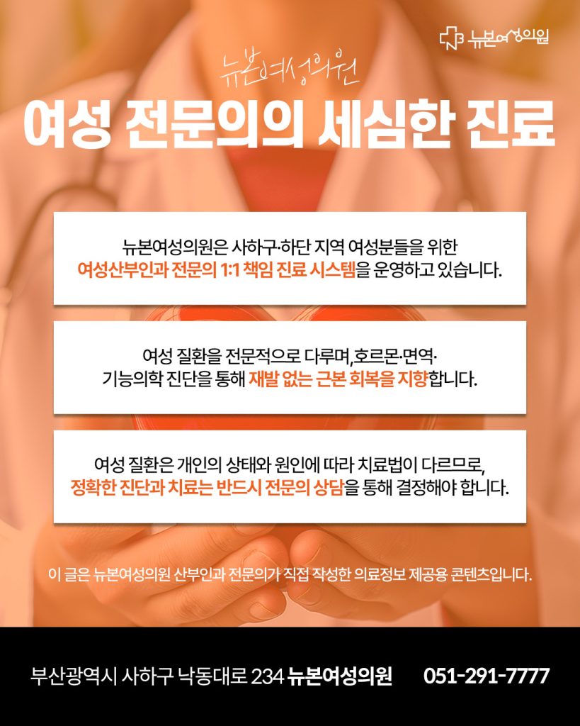 이 글은 뉴본여성의원 산부인과 전문의가 직접 작성한 의료정보 제공용 콘텐츠입니다.
