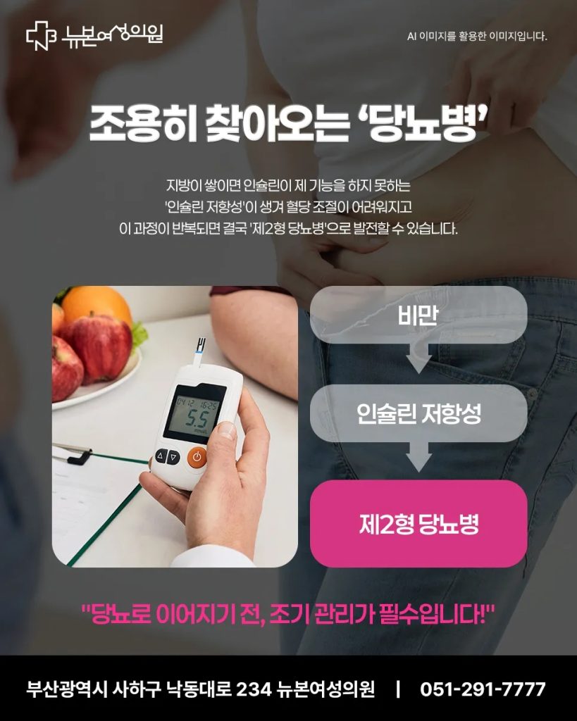 지방이 쌓이면 인슐린이 제 기능을 하지 못하고 혈당 조절이 어려워집니다. 이 과정이 반복되면 결국 제2형 당뇨병으로 발전할 수 있습니다. 많은 환자들이 비만이 먼저, 당뇨가 나중이라는 과정을 겪으며 뒤늦게 문제를 인식합니다. 사하구비만치료로 그렇기 때문에 당뇨로 이어지기 전, 조기 관리가 무엇보다 필요합니다.