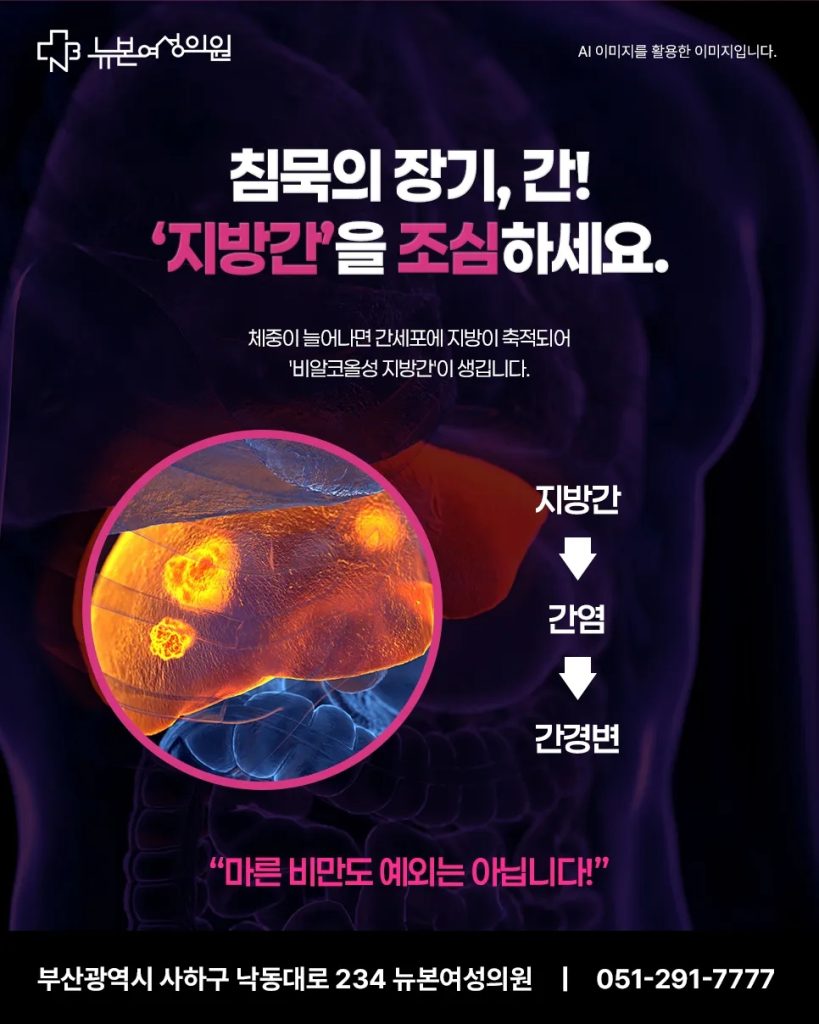 사하구비만치료 비만은 간에도 영향을 줍니다. 체중이 늘어나면 간세포에 지방이 축적되어 비알코올성 지방간이 생기는데, 이를 방치하면 간염·간섬유화·간경변으로 진행될 수 있습니다. 특히 마른 체형이라도 근육량이 적고 내장지방이 많은 ‘마른 비만’이라면 지방간 위험에서 안전하지 않기 때문에 주의가 필요합니다. 또한, 체중이 늘어나면 기도가 좁아지면서 수면 무호흡증이 생길 수 있습니다. 밤새 호흡이 자주 끊기면 숙면이 어렵고, 다음 날 피로와 집중력 저하가 이어집니다. 더 큰 문제는 수면 부족이 다시 식욕 호르몬의 균형을 무너뜨려, 과식을 유발하는 악순환으로 이어진다는 점입니다.