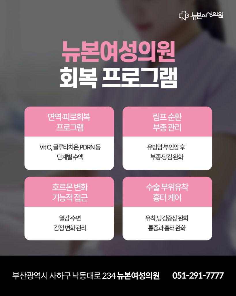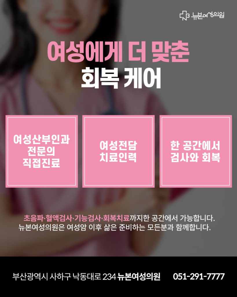 여성암 치료 이후의 다양한 변화를 이해하고 안정적인 회복을 제공하고 있습니다.