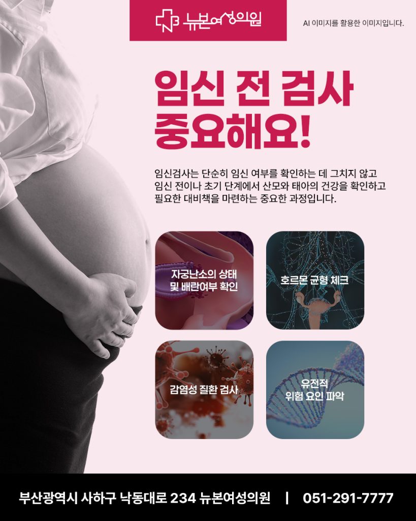 임신은 설레는 시작이지만, 동시에 철저한 준비가 필요한 과정입니다. ‘괜찮겠지’라는 막연한 마음보다 현재 내 몸의 상태를 정확히 확인하고 필요한 관리를 시작하는 것이 무엇보다 중요합니다. 뉴본여성의원에서는 예비 산모의 건강을 세심히 살피는 사하구임신검사 프로그램을 통해 안전하고 계획적인 임신을 돕고 있습니다.