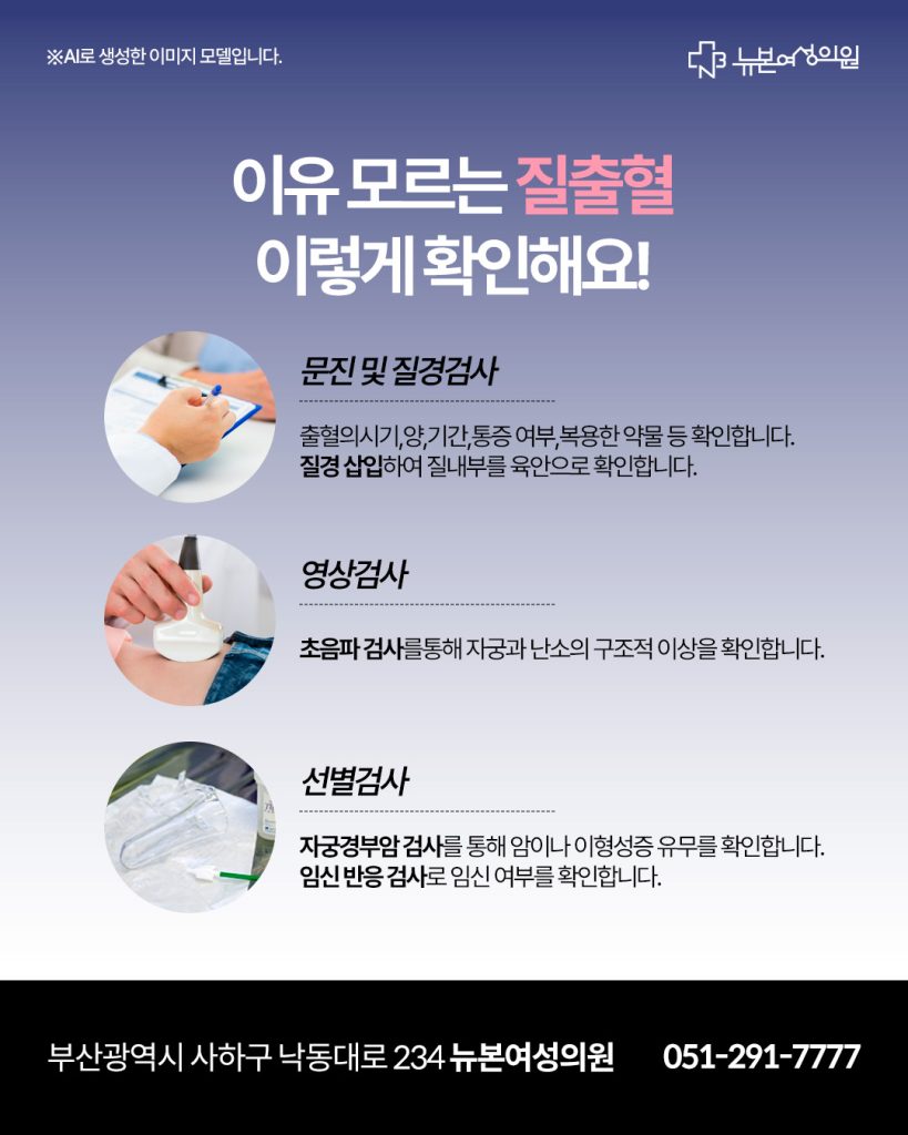이처럼 질출혈은 단순히 출혈 자체만을 보는 것이 아니라 그 원인을 확인하는 과정이 중요합니다.