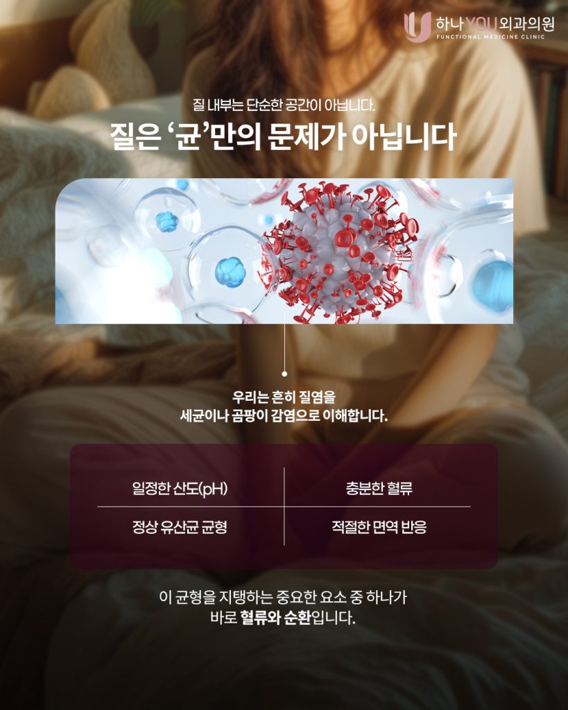 질 내부는 일정한 산도와 유산균 균형이 유지되어야 안정적입니다. 이 균형을 지탱하는 중요한 요소 중 하나가 바로 혈류와 순환입니다.