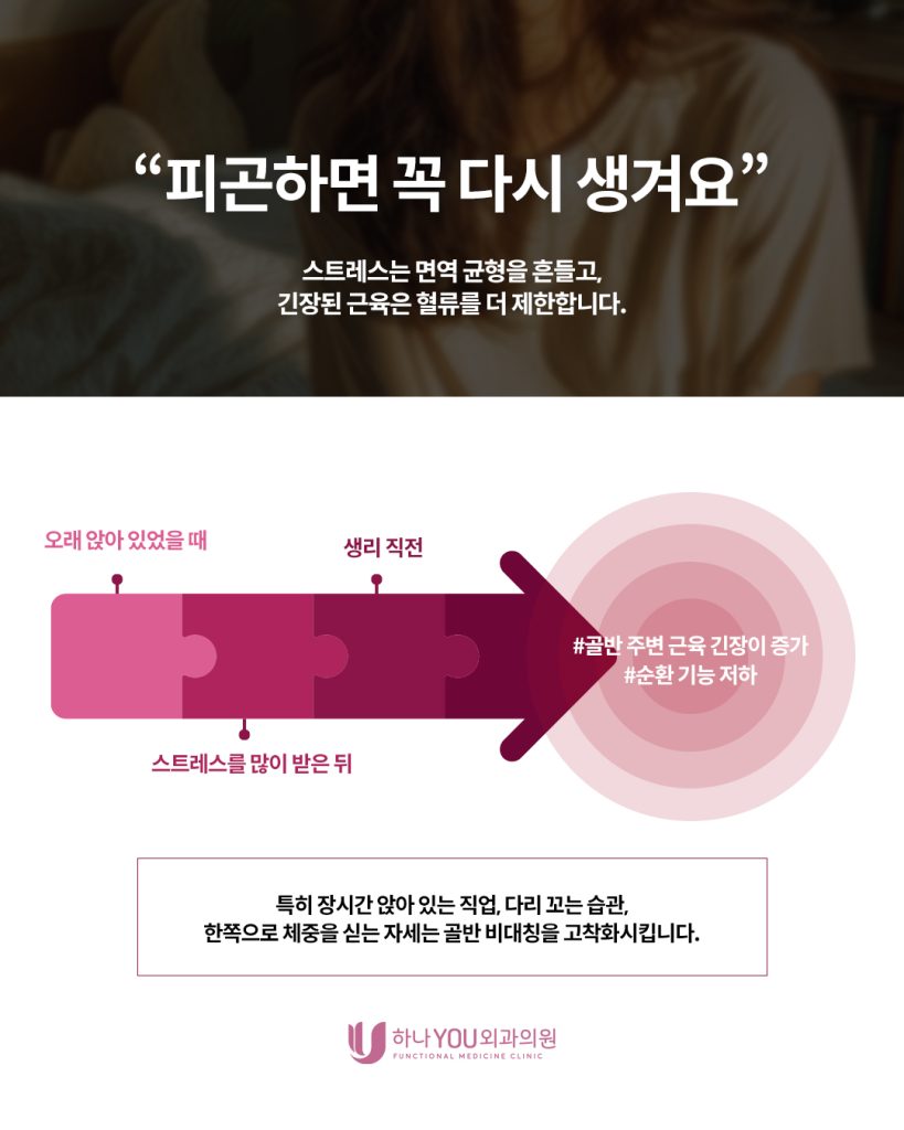 👉 골반 주변 근육 긴장이 증가하고 순환이 떨어진다는 점입니다.