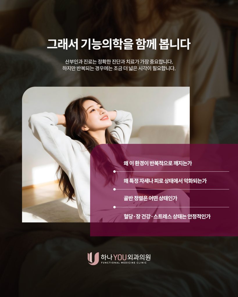 하나유가 산부인과 진료에 기능의학을 더하는 이유는 바로 이 연결 구조를 보기 위함입니다.