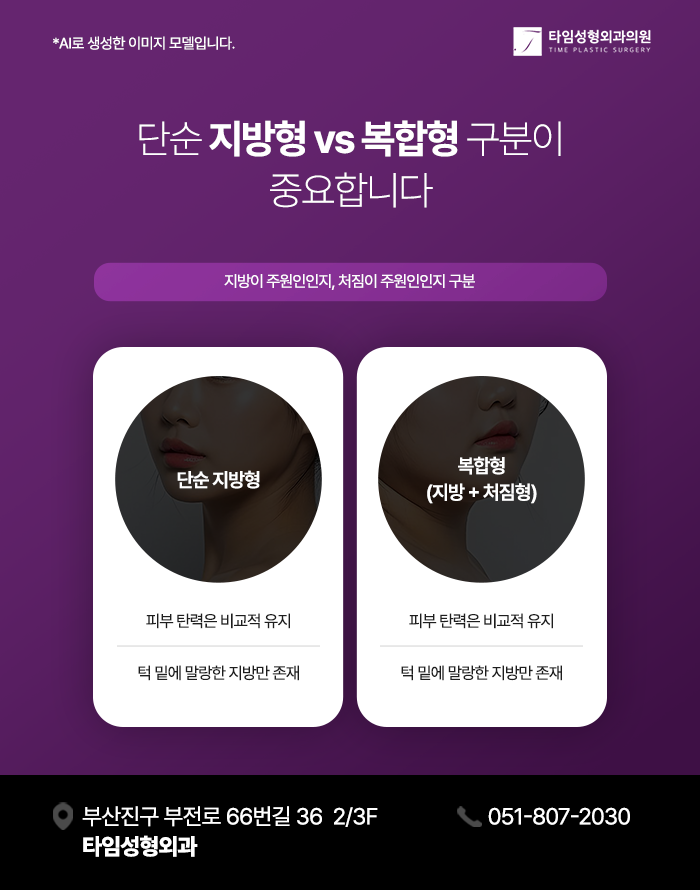 이중턱은 단순히 체중증가로만 발생하는 현상이 아니라, 턱 밑 부위의 지방층 구조와 피부탄력, 근육 긴장도, 그리고 노화에 따른 조직 변화가 복합적으로 작용하여 나타나는 얼굴 윤곽 변화의 한 형태입니다.