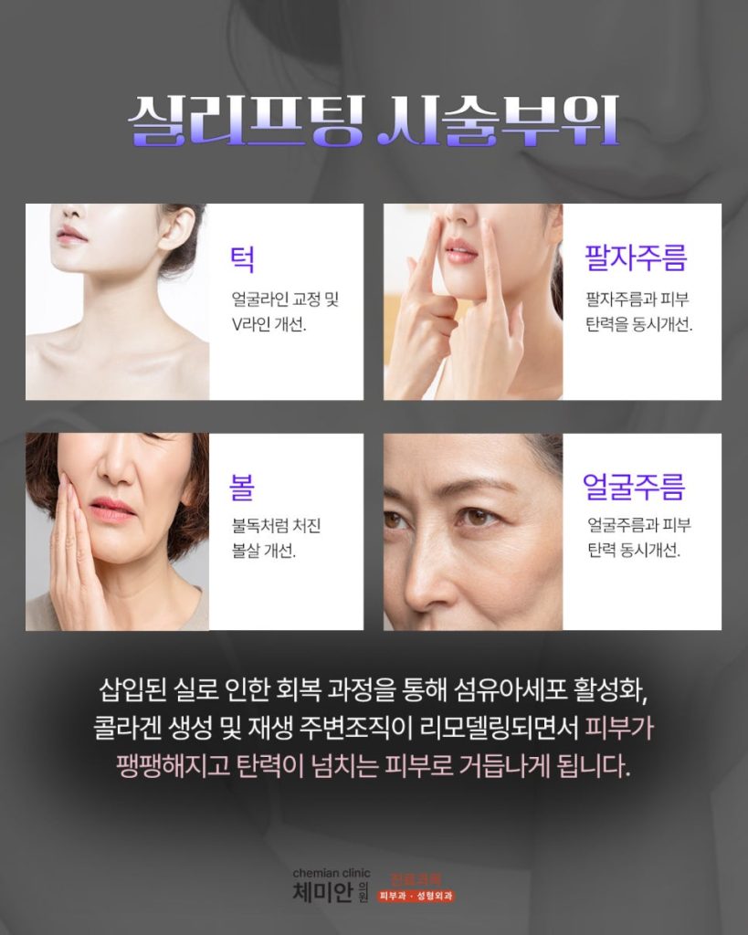 실리프팅은 얼굴 전반적으로 다양한 부위에 적용 가능합니다.
