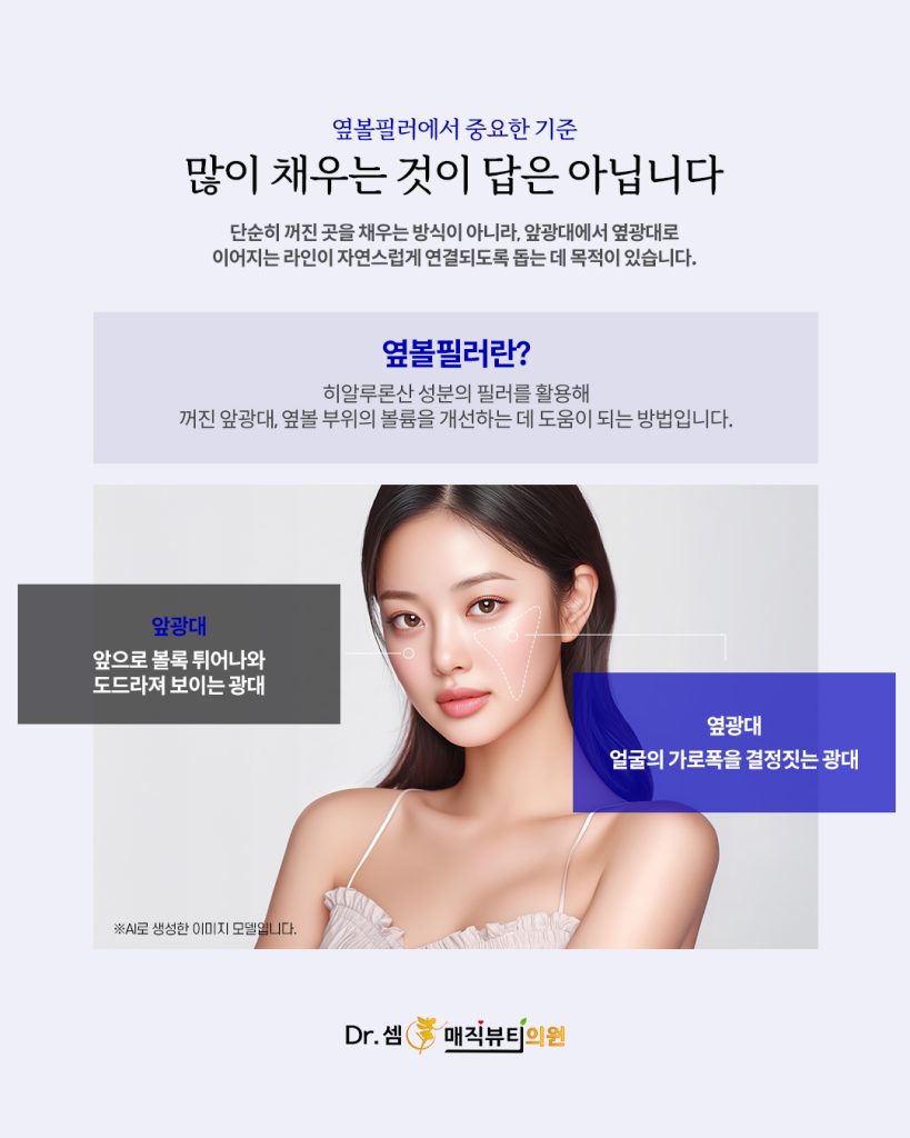얼굴 인상은 정면에서만 결정되지 않습니다. 앞광대에서 옆광대, 그리고 옆볼로 이어지는 라인은 얼굴의 가로 폭과 입체감을 만들어주는 중요한 흐름입니다. 이 중 옆볼 부위의 볼륨이 줄어들면 얼굴이 납작해 보이거나 광대가 상대적으로 더 튀어나와 보이면서 서면옆볼필러 전체적인 균형이 깨진 듯한 인상을 주게 됩니다.