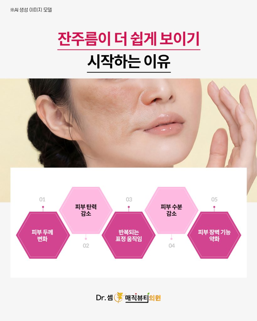 특히 눈가나 입가처럼 표정 움직임이 많은 부위에서 작은 잔주름이 눈에 띄기 시작하면 피부 컨디션이 예전과는 달라졌다는 것을 체감하게 됩니다.
