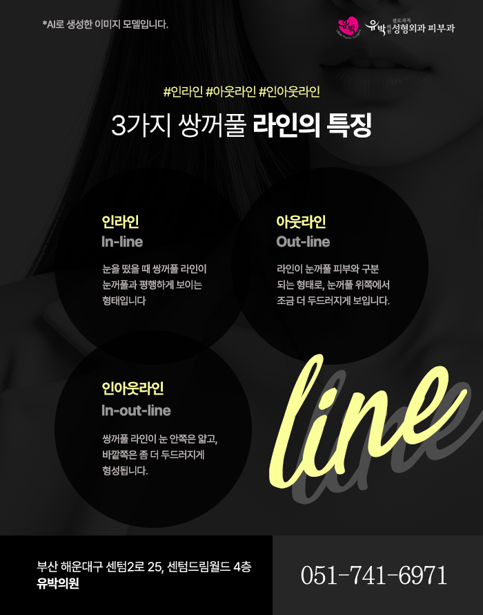 아웃라인 쌍꺼풀은 눈을 떴을 때 라인이 눈꺼풀 피부와 명확히 구분되는 형태로, 눈꺼풀 위쪽에서 조금 더 두드러지게 나타납니다. 이러한 라인은 시각적으로 눈을 더 크고 또렷하게 보이게 하기도 합니다. 인아웃라인은 내부와 외부의 특성을 혼합한 형태로, 눈 안쪽은 얇은 라인으로 외측은 상대적으로 두드러진 라인을 형성합니다.