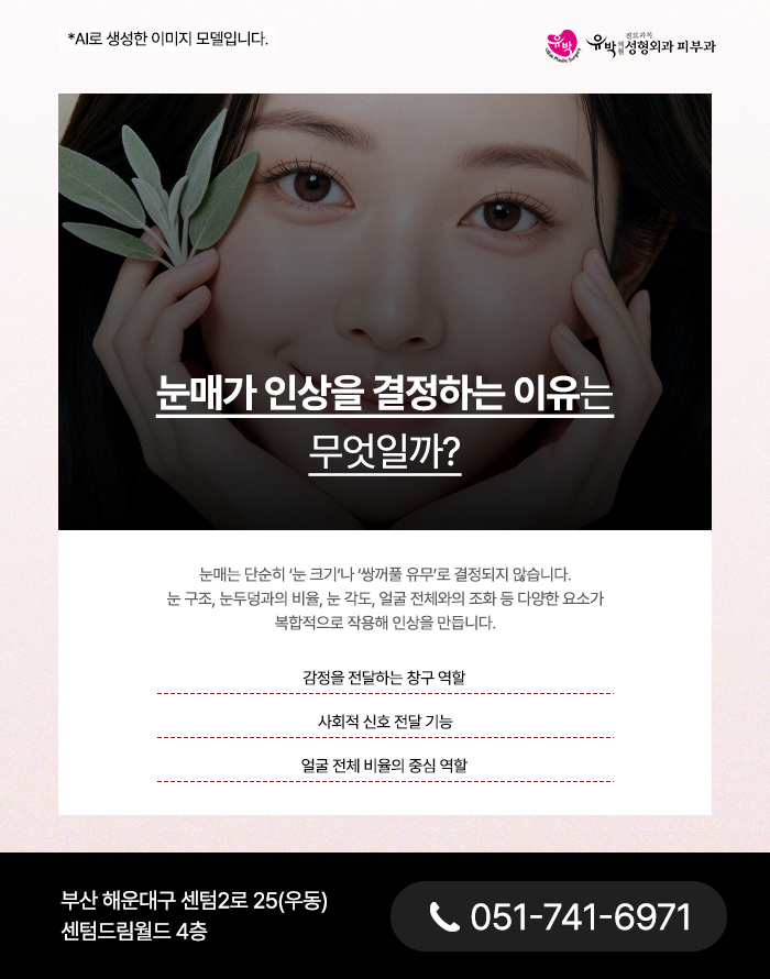 ​눈매를 결정하는 가장 기본적인 요소는 눈 자체의 구조와 주변조직의 조화입니다.