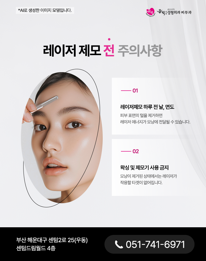 또한 왁싱이나 제모기 사용과 같은 모낭 자체를 제거하는 방식의 제모는 피하셔야 합니다. 레이저제모는 모발에 포함된 멜라닌 색소를 통해 에너지를 전달하는 구조이기 때문에 모낭이 제거된 상태에서는 레이저가 작용할 타겟이 존재하지 않게 됩니다.