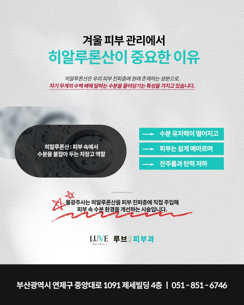 특히 겨울철에는 피부 속 수분 부족과 함께 탄력 저하가 동시에 진행되는 경우가 많기 때문에 두 시술을 각각 따로 접근하기보다 피부 구조와 상태를 고려해 병행 설계하는 방식이 보다 균형 잡힌 관리가 될 수 있습니다.
