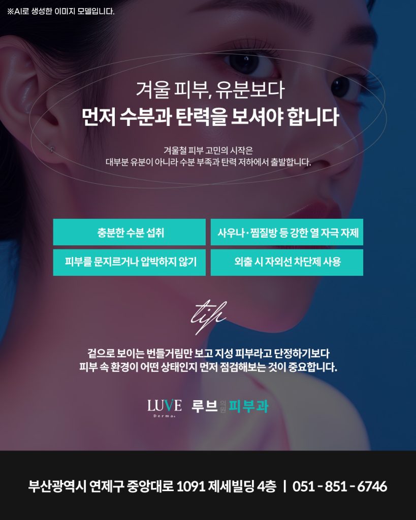 겨울철 피부 관리에서 중요한 것은 겉의 유분을 없애는 것이 아니라 무너진 수분 환경을 먼저 회복시키는 것입니다.