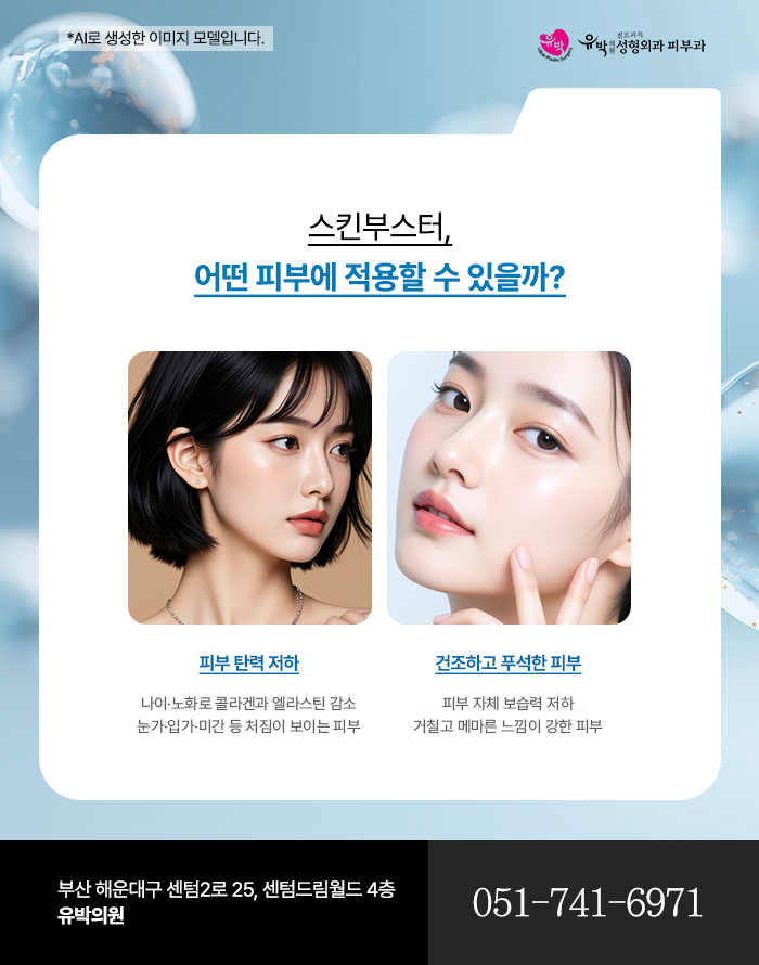 피부 장벽 기능이 저하되거나 수분 보유 능력이 감소하면, 표면이 거칠고 건조하게 나타납니다. 계절적 요인, 생활습관, 외부 자극 등이 복합적으로 작용하면서 피부 결이 불균형하게 형성될 수 있으며 피지 분비 과다, 진피층 구조 약화, 탄력 저하 등의 요인으로 인해 모공이 확대되고, 표면이 울퉁불퉁하게 나타나는 경우 등에도 스킨부스터를 고려해볼 수 있습니다.