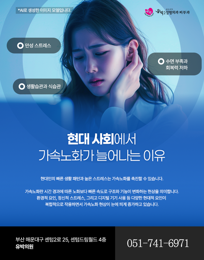 현대 도시 환경은 광노화를 촉진하는 여러 요소로 가득합니다. 강한 자외선은 DNA 손상, 세포자멸 증가, 탄성섬유 파괴, 기저층 멜라닌 세포 과활성을 유도하며 이는 색소침착, 결 구조 불균형, 표면 탄력저하로 이어집니다. 여기에 초미세먼지, 배기가스, 화학입자 등이 피부 장벽에 침투하면 면역세포의 과반응이 발생하여 만성 염증성 변화가 지속됩니다. 장기간 이러한 환경적 요인에 장기간 노출되면 정상 노화보다 훨씬 빠른 속도로 조직 노화가 진행될 가능성이 있습니다.