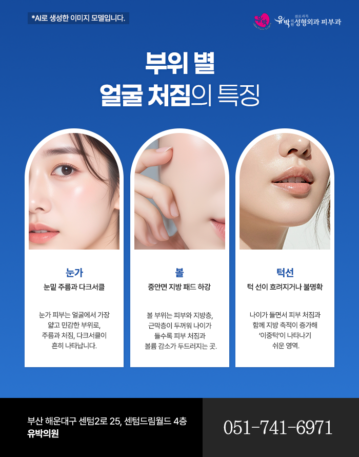 연부조직 하강, 지방재배치, 지지구조 약화로 발생하는 중안면 변화