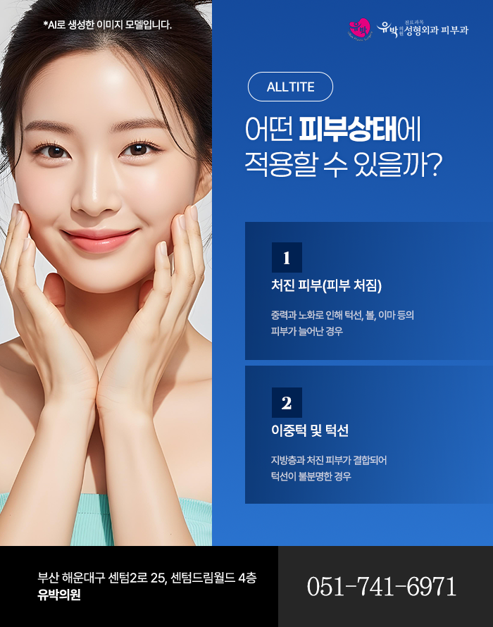 연령이 증가하면서 중, 하악선 부위를 지지해주는 구조물의 탄성이 약화되면, 얼굴 윤곽이 아래쪽으로 이동하는 현상이 발생합니다. 이러한 상태에서는 광대 아래 패임, 볼륨의 아래 방향 이동, 턱 아래 연부층 확장 등이 함께 나타나며 결과적으로 얼굴 외곽선이 흐릿해지는 경향이 생깁니다. 이러한 피부상태의 경우 올타이트리프팅을 고려해볼 수 있습니다.