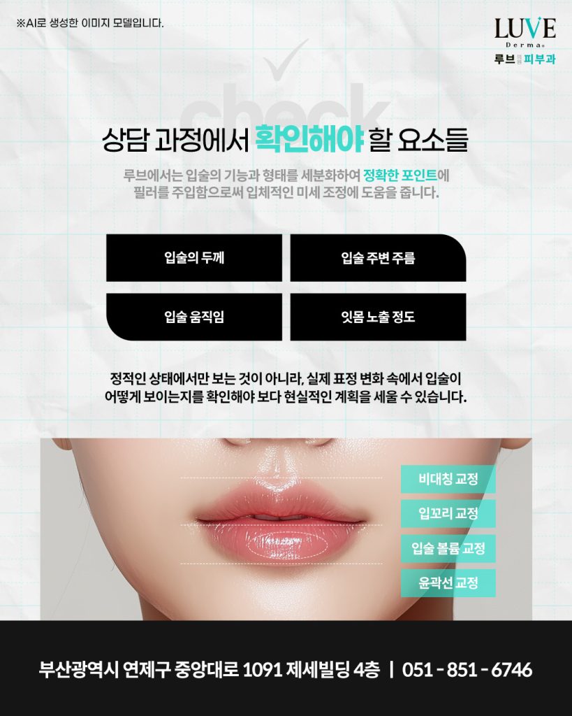 입술은 얼굴에서 차지하는 면적은 크지 않지만, 표정과 분위기를 좌우하는 데 상당한 영향을 주는 부위입니다. 타고나게 얇은 입술, 좌우 높이나 두께가 다른 경우, 혹은 나이가 들면서 볼륨이 감소해 선이 흐려진 경우에는 전체 인상이 또렷하지 않게 느껴질 수 있습니다. 이러한 변화는 화장을 하거나 웃고 말하는 일상적인 순간에서 더 잘 드러나는 편입니다.