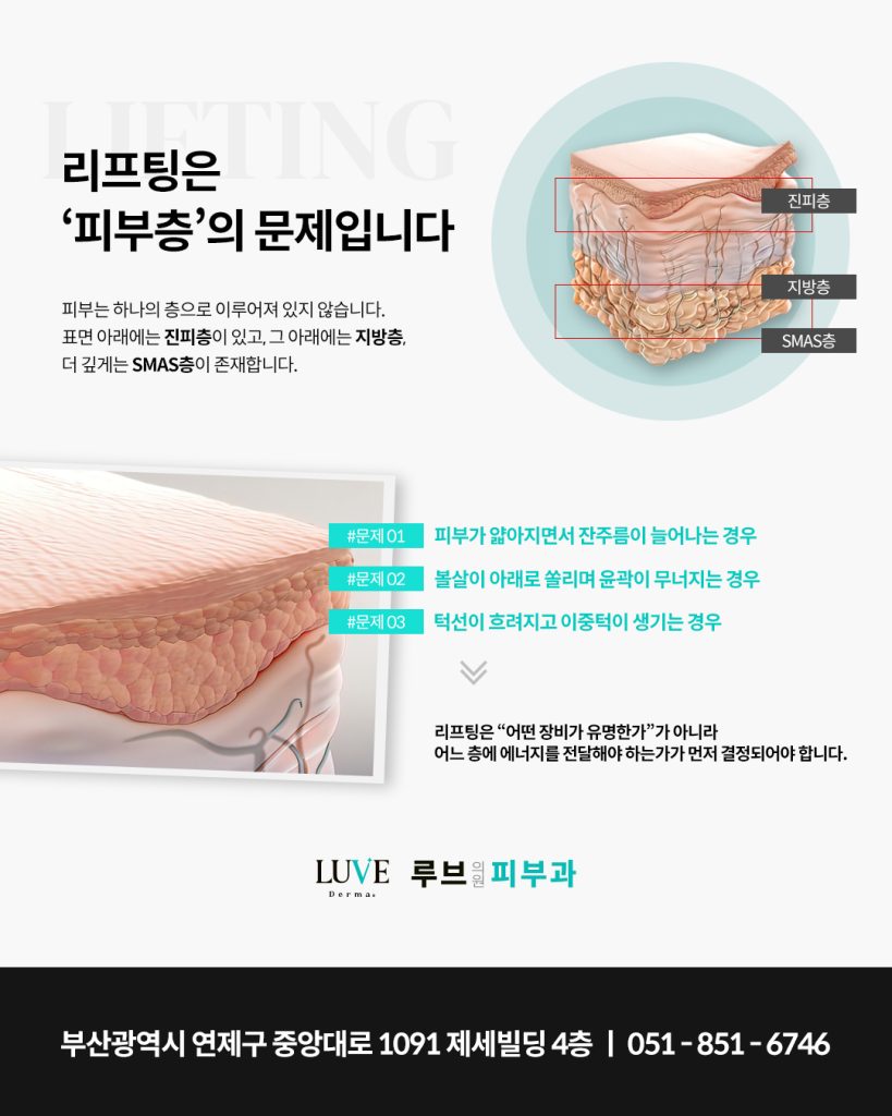 저희 루브가 늘 강조하는 리프팅은 장비의 문제가 아니라 어느 층을 어떻게 설계하느냐의 문제라는 점입니다.
