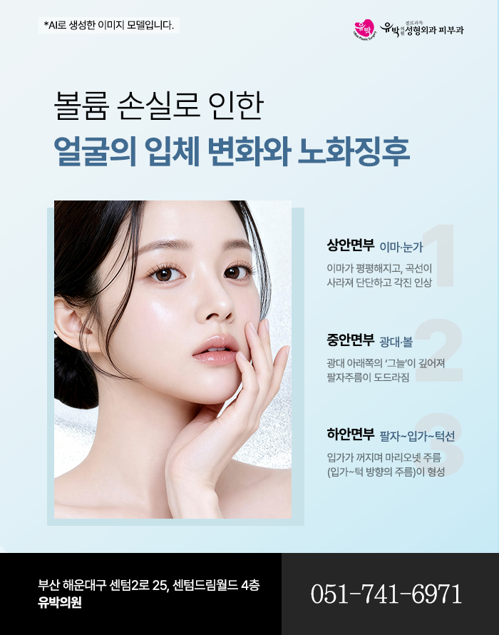 노화가 진행되면 얼굴의 볼륨이 줄어들고, 피부를 지탱하던 지방층과 연부조직이 아래로 이동하면서 얼굴 전체의 입체감이 사라집니다. 특히 이마, 관자, 보륨, 팔자주름 부위에서 꺼짐이 두드러지며 얼굴 중심부가 평면적으로 변해 피곤하거나 나이들어보이는 인상을 주게 됩니다. 이러한 얼굴 볼륨의 소실은 단순히 피부의 문제라기보다 지방층의 위축과 연부조직의 지지력 약화, 그리고 골격의 흡수가 복합적으로 작용한 결과입니다.