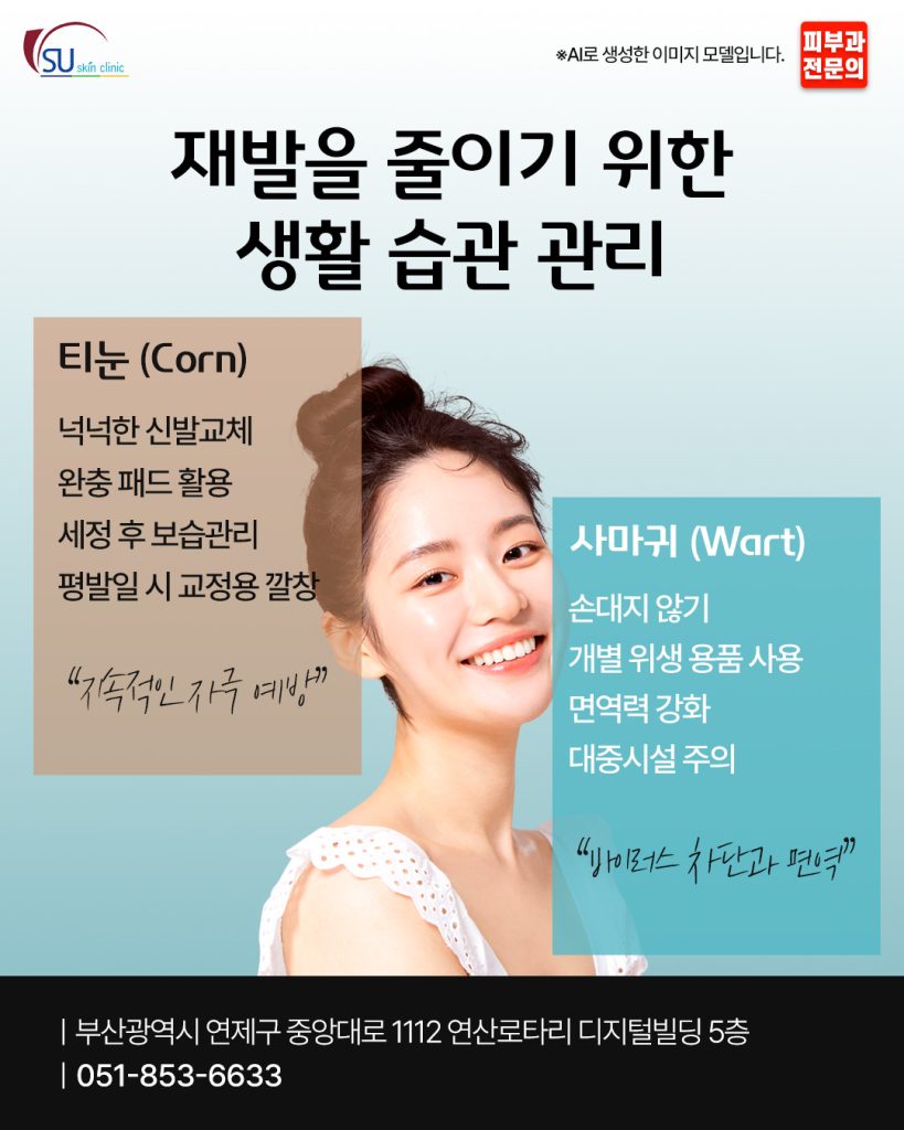 티눈과 사마귀 모두 생활 습관 관리가 중요합니다.