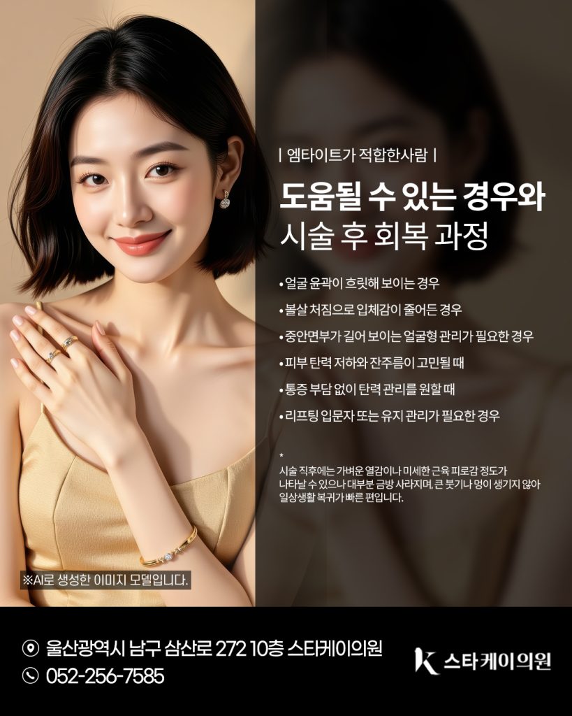 또한 울산스타케이의원 표정근의 패턴을 정돈해 볼살 처짐이나 턱선의 흐릿함과 같은 변화에도 도움이 될 수 있습니다.