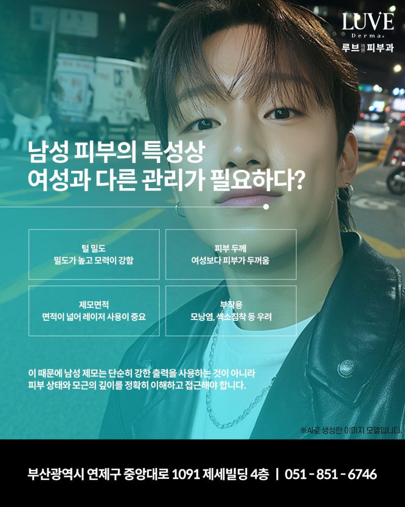 남성의 피부는 피지 분비가 많고 털이 굵으며, 모공이 넓어 세균이 번식하기 쉬운 환경입니다.