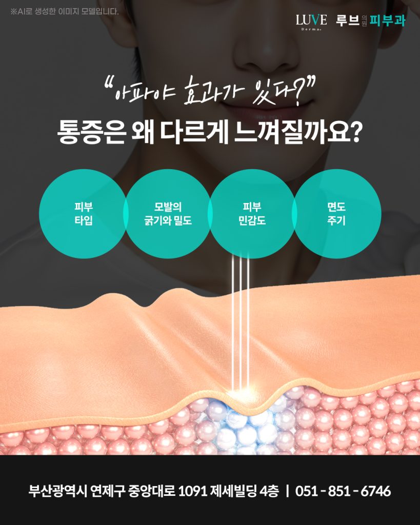 특히 턱이나 인중처럼 수염이 굵고 밀도가 높은 부위는 레이저 자극이 더 크게 느껴질 수 있다는 이야기를 많이 접하게 되면서 몇 번 못 받고 포기하게 되는 건 아닐까라는 걱정을 하게 되기도 합니다.