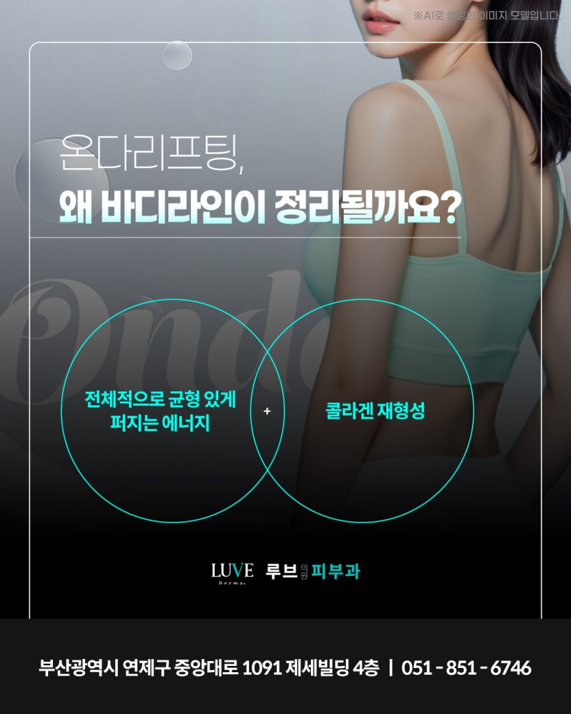 바디는 얼굴보다 면적이 넓고 두께가 다양하기 때문에 특정 지점에만 강하게 작용하는 방식은 오히려 불균형을 만들 수 있습니다. 온다리프팅은 비교적 넓은 영역에 에너지를 분산시키면서 전달되기 때문에 국소적인 변화보다는 전체적인 라인을 부드럽게 정리하는 방향으로 작용할 수 있습니다.