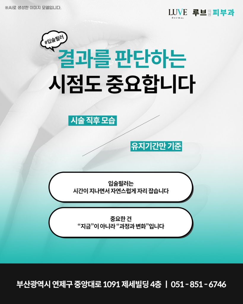 입술필러는 비교적 빠르게 변화가 보이는 시술이지만 초기 상태가 최종 결과는 아닙니다.