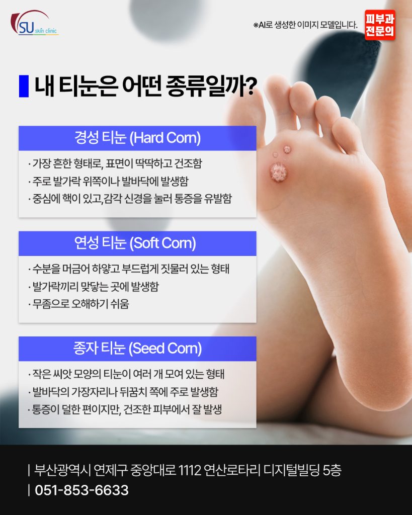 연산동티눈은 외관만으로 스스로 판단하면 사마귀나 다른 피부 질환과 혼동될 수 있습니다.