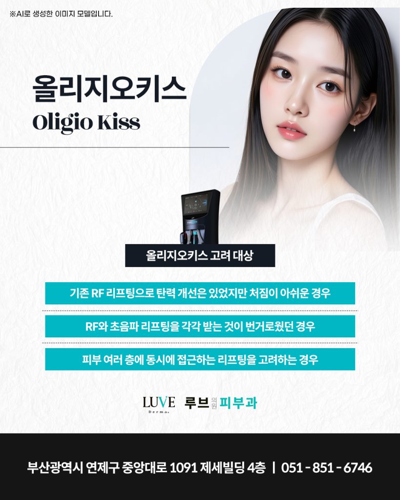쉽게 설명하면 기존 올리지오는 피부 탄력 중심의 접근이었다면 올리지오KISS는 피부 구조의 여러 층을 동시에 고려한 리프팅 접근이라고 볼 수 있습니다.