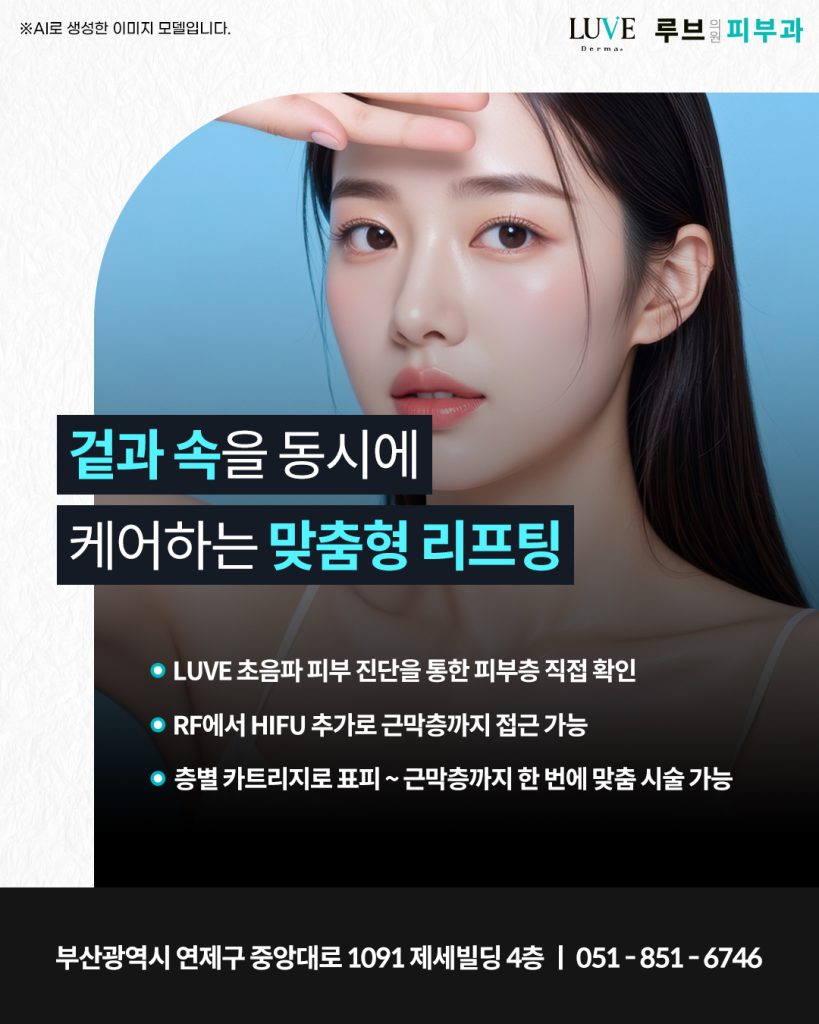 그래서 루브의원에서는 초음파 피부 진단을 통해 피부 층을 직접 확인한 뒤 각 개인에게 적합한 방식으로 리프팅 계획을 안내하고 있습니다.